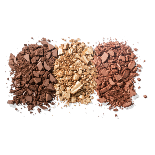 Using a defining powder brush, apply the matte shade to the cheekbone, jawline, and forehead. With a large powder brush, add warmth with the shimmer shade to the cheeks, forehead, and across the bridge of the nose. To bring light to the face, using a fan brush highlight the high points of the face.