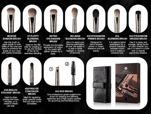The Black Swan Series is a 21-piece brush set with following specifications: