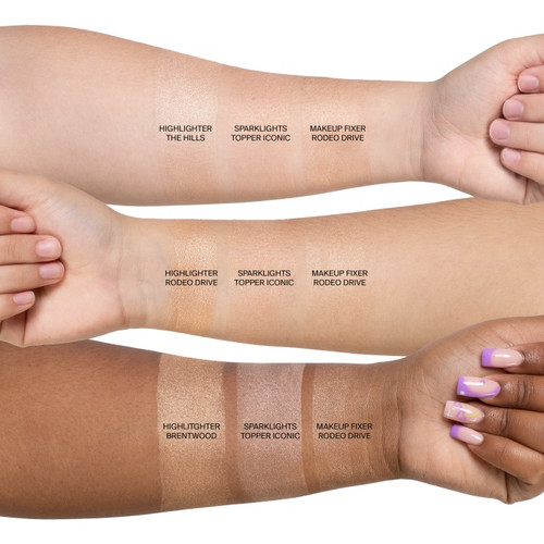 A radiant setting and body spray made with Rodeo Drive. Do not stop glowing in OFRA's radiant setting and body spray. Made with OFRA's Rodeo Drive pearl, mist this glow spray to seamlessly blend and set your makeup all day long with a lit from within glow that’s not oily. Ready to go? Spray liberally onto shoulders, legs, and arms for the perfect all-over shine.