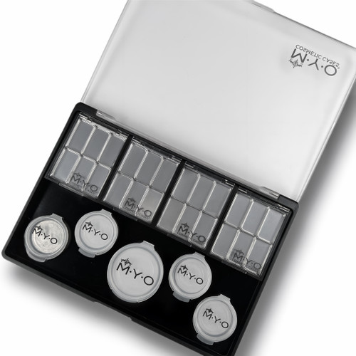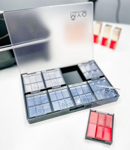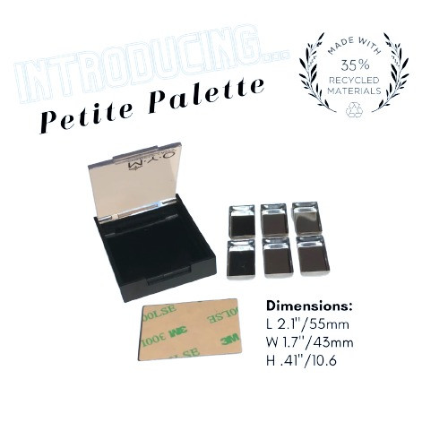 You asked for it and MYO Cosmetic Cases delivered! Petite Palettes, made of 35% PCR, great on their own, these Palettes are designed to fit into MYO's Mini Case, Pro Travel Makeup Case (touch up case) and 8 Petite Palettes fit perfectly in MYO's Tall Companion Palette.