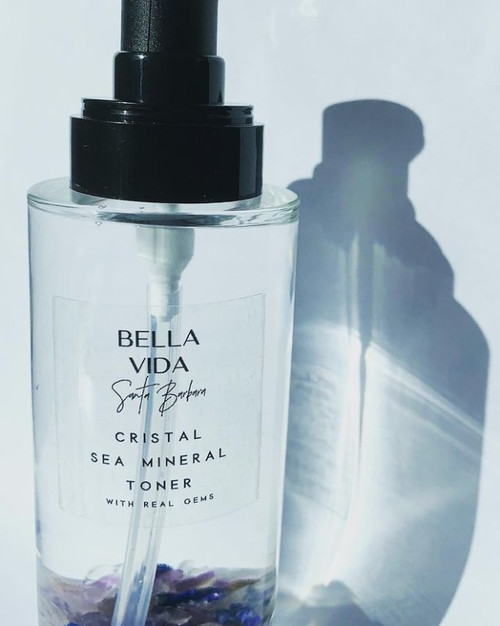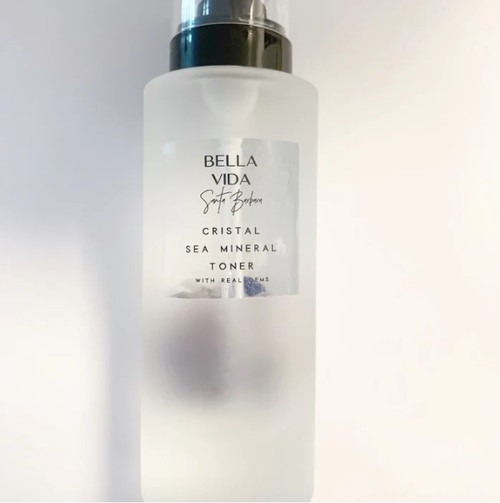 The Cristal Sea Mineral Hydrating Toner contains real gemstones for balancing the body, mind & soul. With Hyaluronic Acid for deep hydration, organic blue green algae and sea kelp to nourish, rosewater and organic aloe to soothe irritation and remove residue of dirt, makeup and face masks. Skin will be refreshed, clear and glowing.