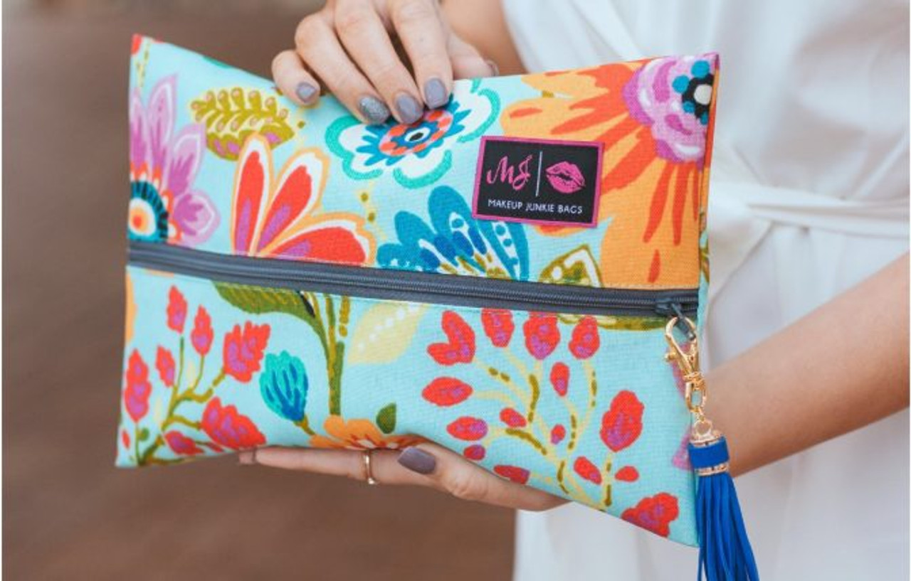 The designers at Makeup Junkie Bags take a lot of pride in their handcraft. All fabrics are printed and dyed in separate runs. So while each run will be similar, an exact colour match can't be guaranteed. If anything, this makes each bag a unique, handmade master piece. Also, interiors vary depending on availability and are moisture resistant.