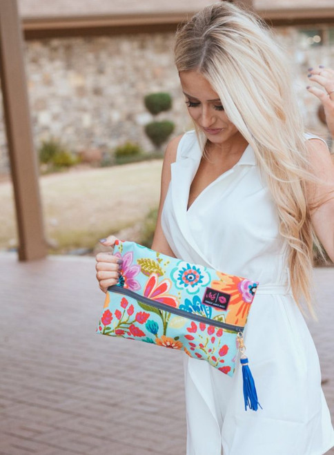 The Bloom Bag has a cotton exterior with a wipeable interior. Each handcrafted Bloom bag comes with a heather grey zipper and colour matching tassel.