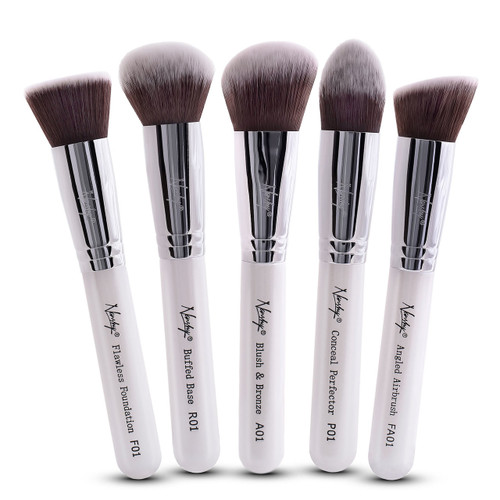 The Gobsmack Glamorous Brush Collection in Pearlescent White and Onyx Black is perfect to create a flawless complexion. Achieve an airbrush-like finish using liquid, cream or powder products. Imperfections are easily covered and complexions are brightened with ease.